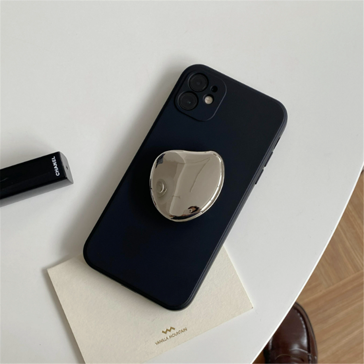 シルバーのスマホグリップがクールで存在感抜群です◎
