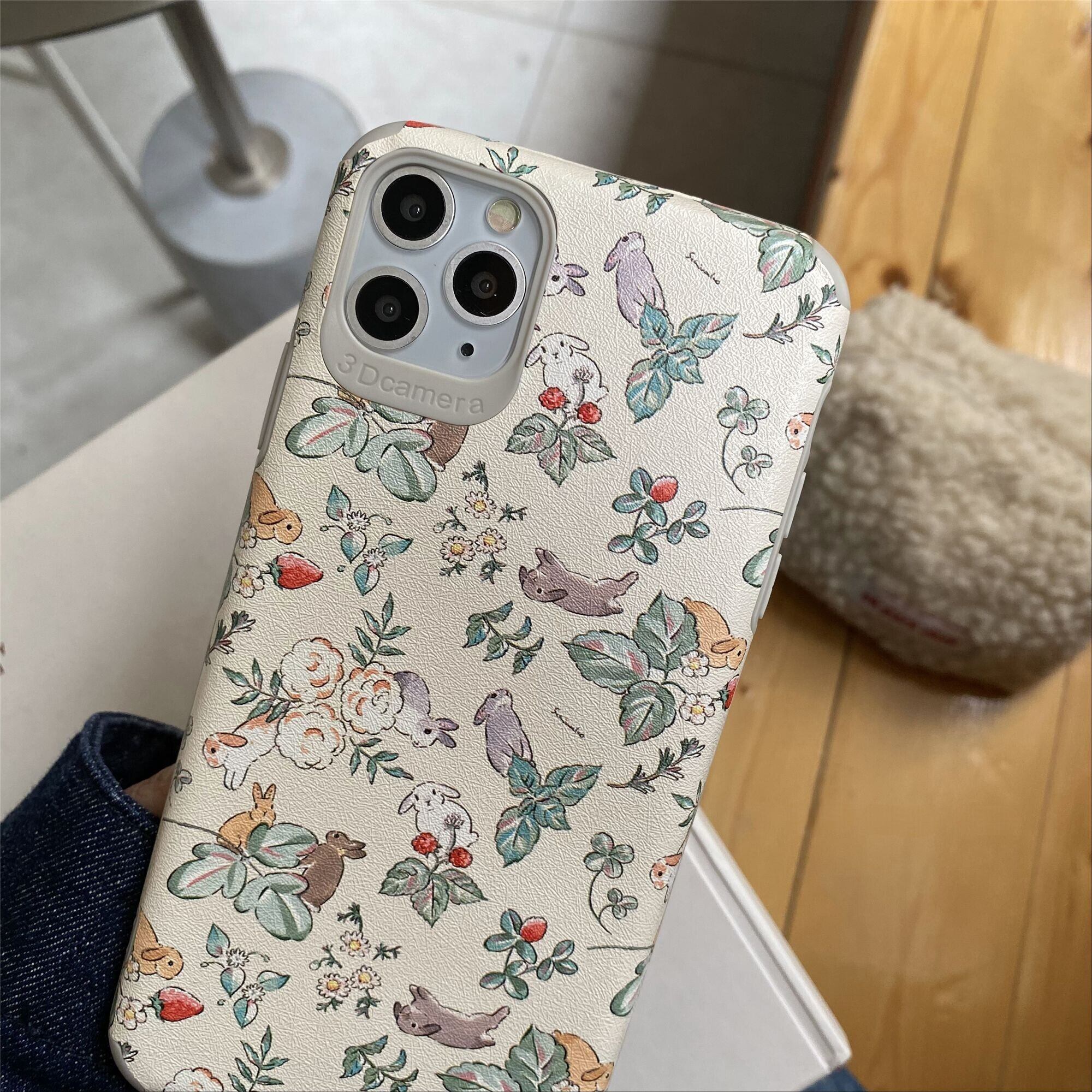 うさぎと植物のモチーフが可愛いiPhoneケース。
